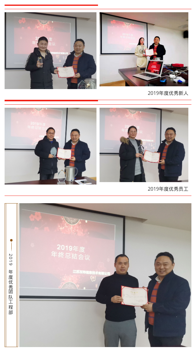 2019年已经过去,新的一年,新的起点,新的机遇,新的挑战,2020年1月17日江苏互特召开2019年年终总结大会。公司全体人员齐聚一堂,总结过去一年取得的成绩,谋划新一年的发展方向。