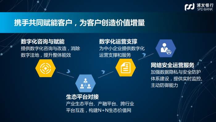 浦发银行倡议政府、实体企业、科技公司、行业专家等各方携手,共同为企业数字化转型赋能。